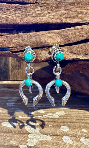 ZUNI FEATHERS Vintage Sleeping Beauty Turquoise & Silver Stud Earrings JM02