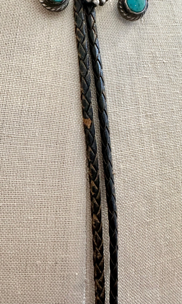 ART LEWIS NAJA Vintage 1950s Silver and Turquoise Onyx Bolo Tie 26B06
