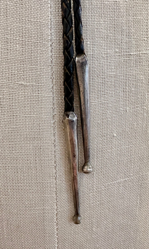 CONDITION: Good, there is some normal wear to the leather cord and some rust on the silver from age, please see photos.