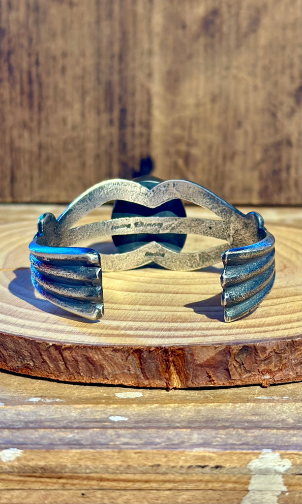 CHIMNEY BUTTE Navajo Turquoise & Sandcast Silver Cuff 26C03 • 54g