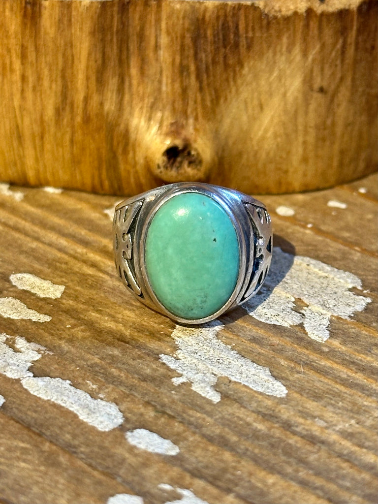 RISING EAGLE Vintage Navajo 50s/60s Turquoise & Silver Men's Ring 26R46 | Size 8.5