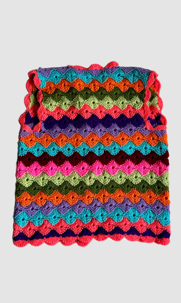 BRIGHT RAINBOW Vintage 70s Crochet Sweater Vest • Lg. to XL