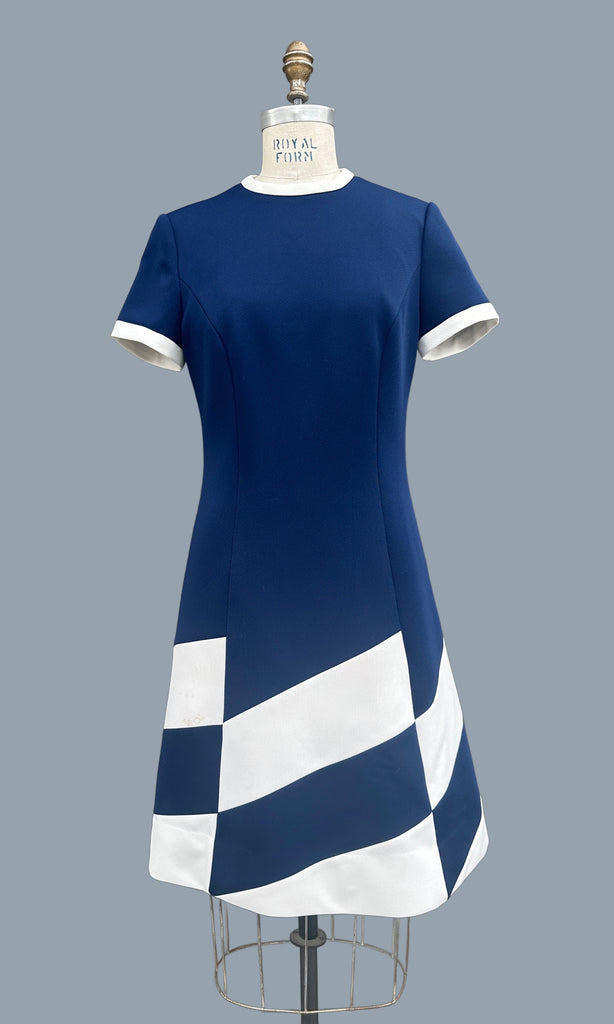 A fabulous duo that’s pure Mod magic! Wear them together for maximum impact or style each piece on its own. Both the dress and coat feature bold geometric contrasting insets on the skirt for that signature Lilli Ann flair.