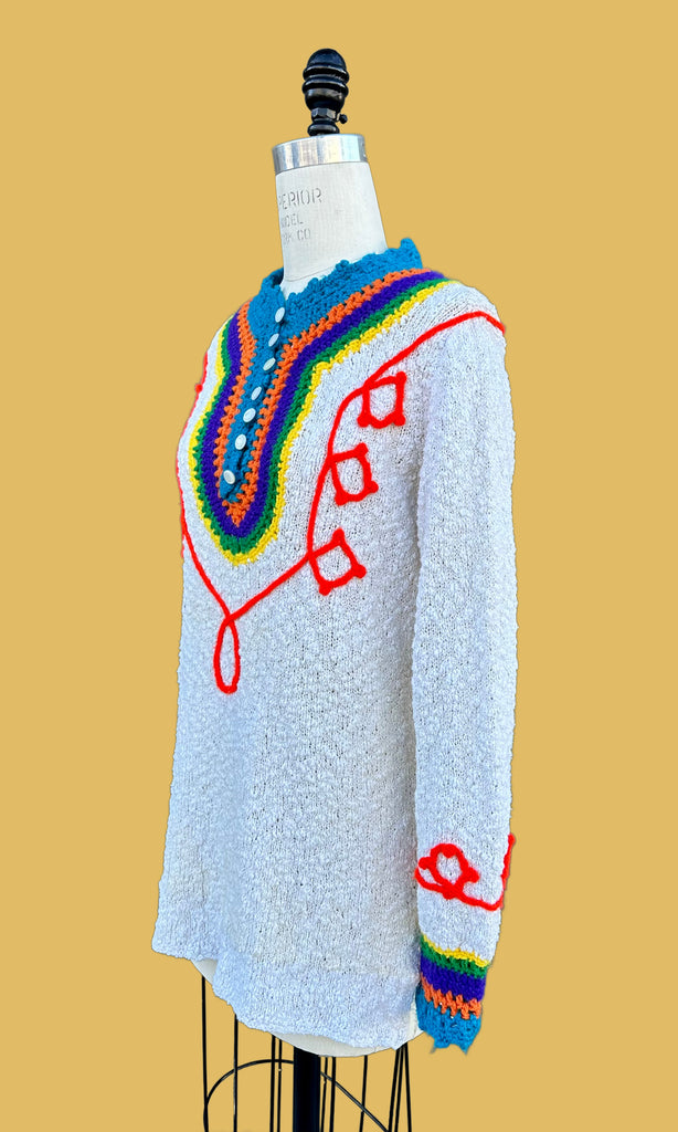 RAINBOW KNIT 70s Long Sleeve Top • Med. to Lg.