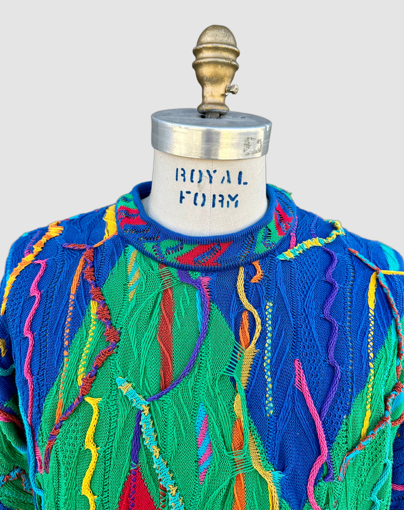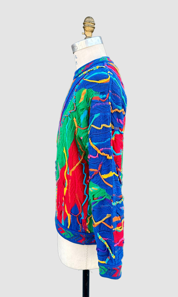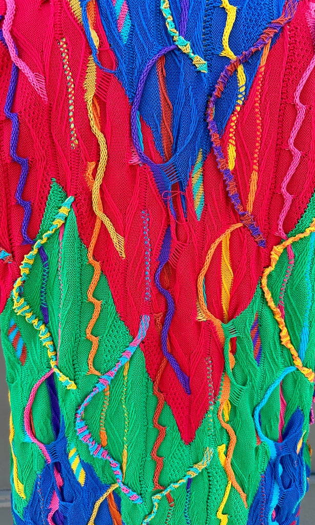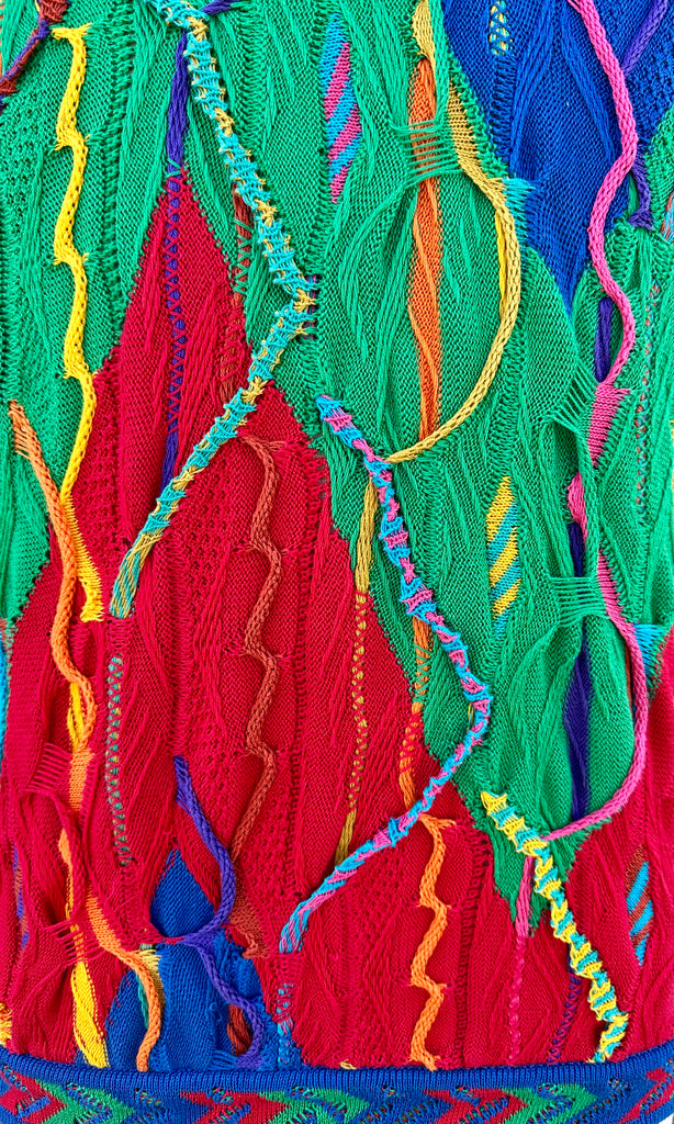 Finely crafted from 100% mercerized cotton, this stretchy sweater highlights the precision and artistry of COOGI’s custom-engineered knitting machines, which intricately construct each panel with remarkable depth and definition. The design features an interplay of vivid, kaleidoscopic colors and patterns woven directly into the fabric, enhanced by raised, multi-dimensional textures. Every element is carefully composed to ensure no two pieces feel exactly alike, resulting in a truly distinctive aesthetic. This standout piece is handcrafted in Australia!
