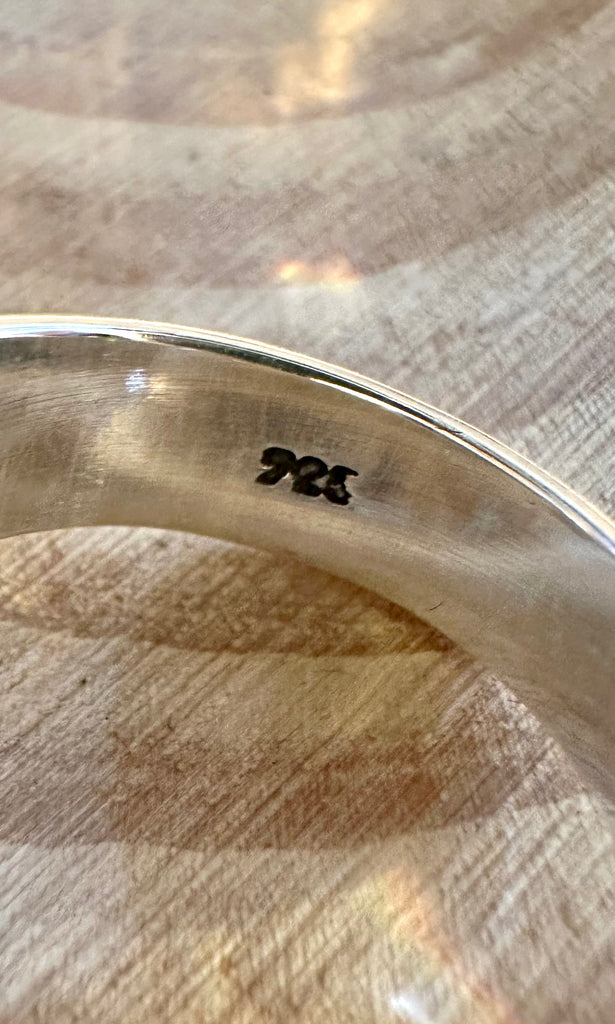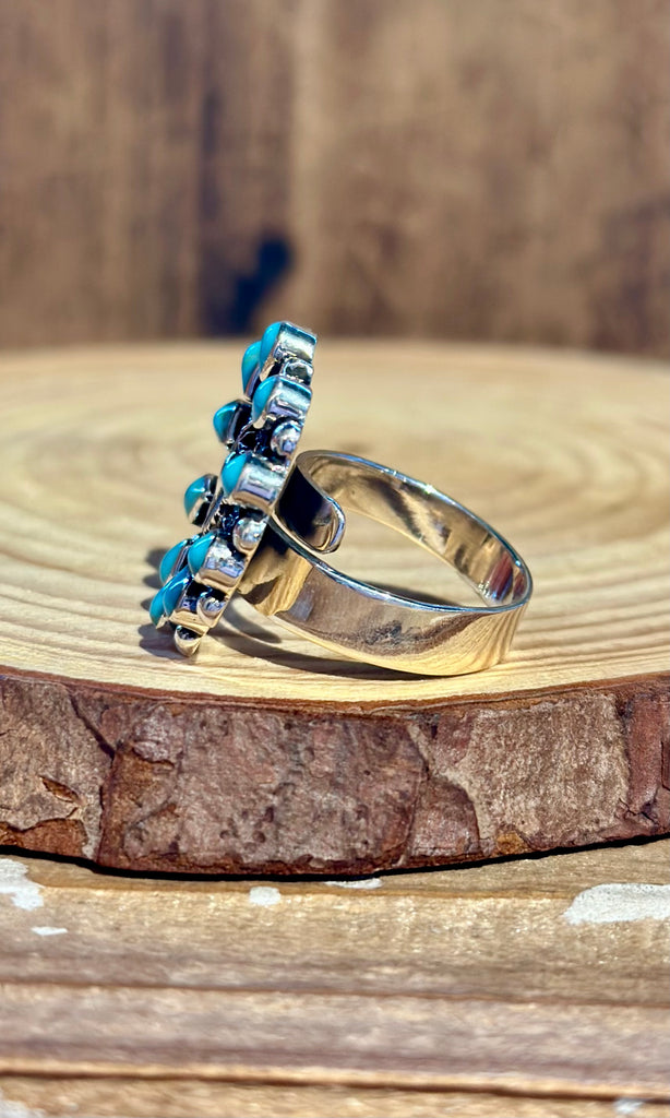 MEXICAN SACRED HEART Turquoise & Silver Adjustable Ring 26R36 • Adj. Sizing