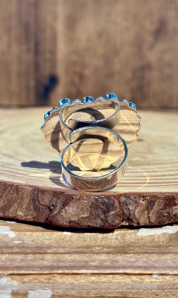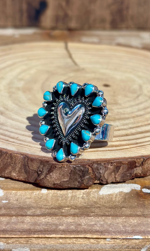 MEXICAN ADJUSTABLE HEART Turquoise & Silver Ring 26R37 • Adj. Sizing