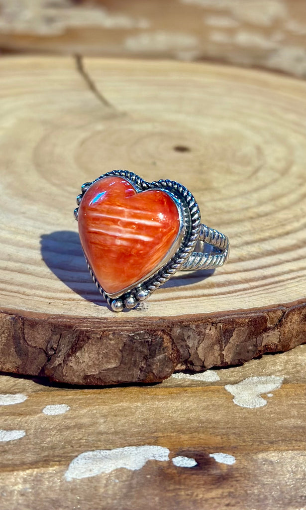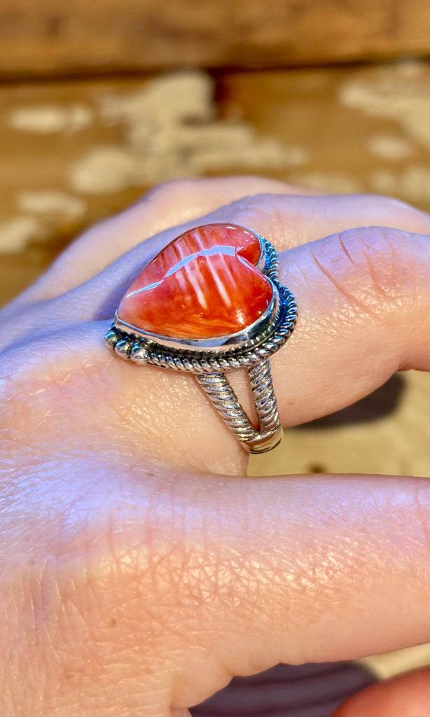 NAVAJO SPINEY OYSTER & Sterling Silver Heart Ring 26R40 • Size 9