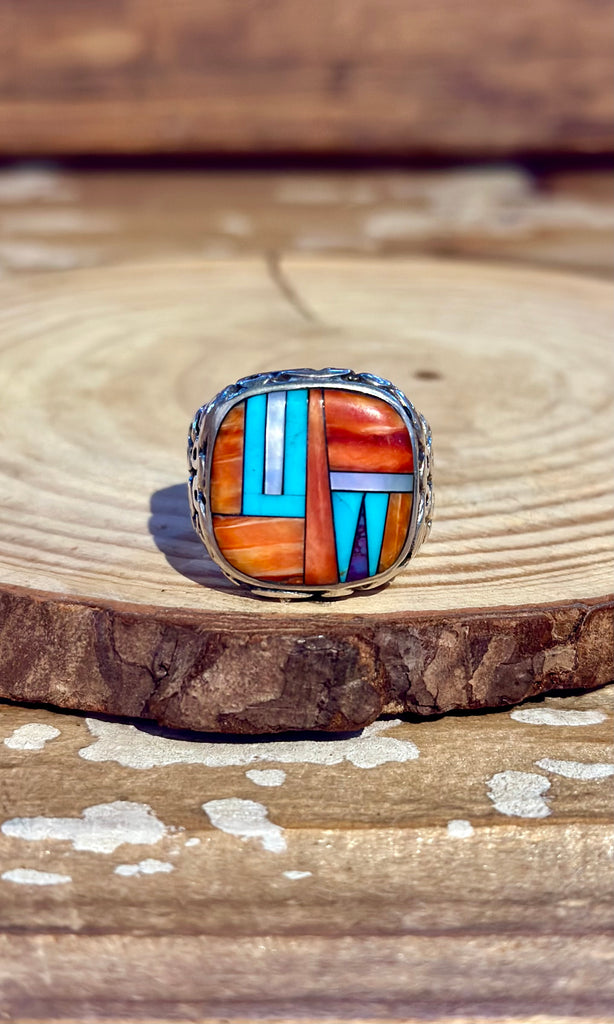 MYRA NASTACIO ZUNI Vintage Inlay Men's Ring 26R25 • Size 10