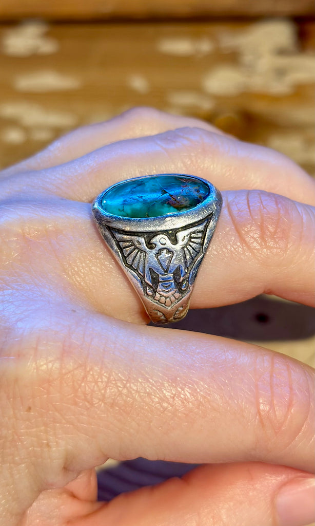 BELL TRADING POST Vintage 40s/50s Turquoise & Silver Men's Ring 26R28 • Size 8.5