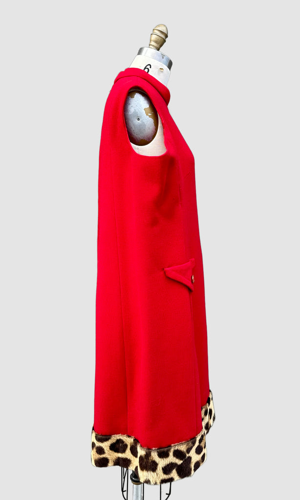A fabulous Don Loper duo! Wear them together for maximum impact or style each piece on its own. Both the dress and coat feature a fur trim and pockets on the front. Don Loper was an American costume designer, this piece specifically from his Beverly Hills collection.