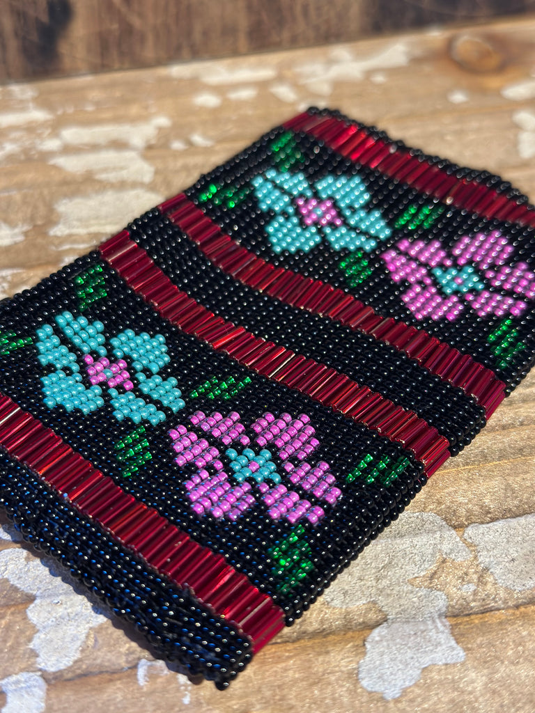 Stunning beaded coin purse, hand loomed in Guatemala with Czechoslovakian beads. The cutest floral beaded pattern in multi colors. Nice weight to the beads and perfect size for credit cards or loose change!
