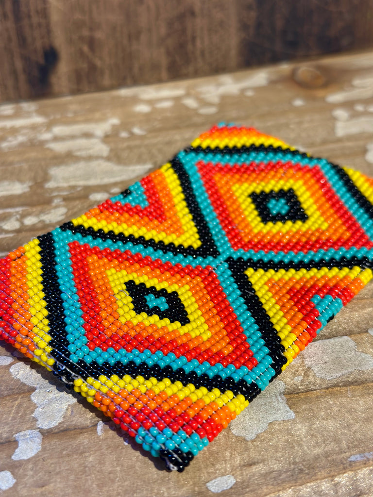 Stunning beaded coin purse, hand loomed in Guatemala with Czechoslovakian beads. Super cool diamond shaped psychadelic pattern. Nice weight to the beads and perfect size for credit cards or loose change!