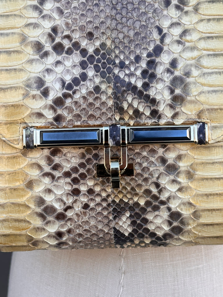 KARA ROSS 2000s Python Bag w/ Jeweled Gemstone Clasp