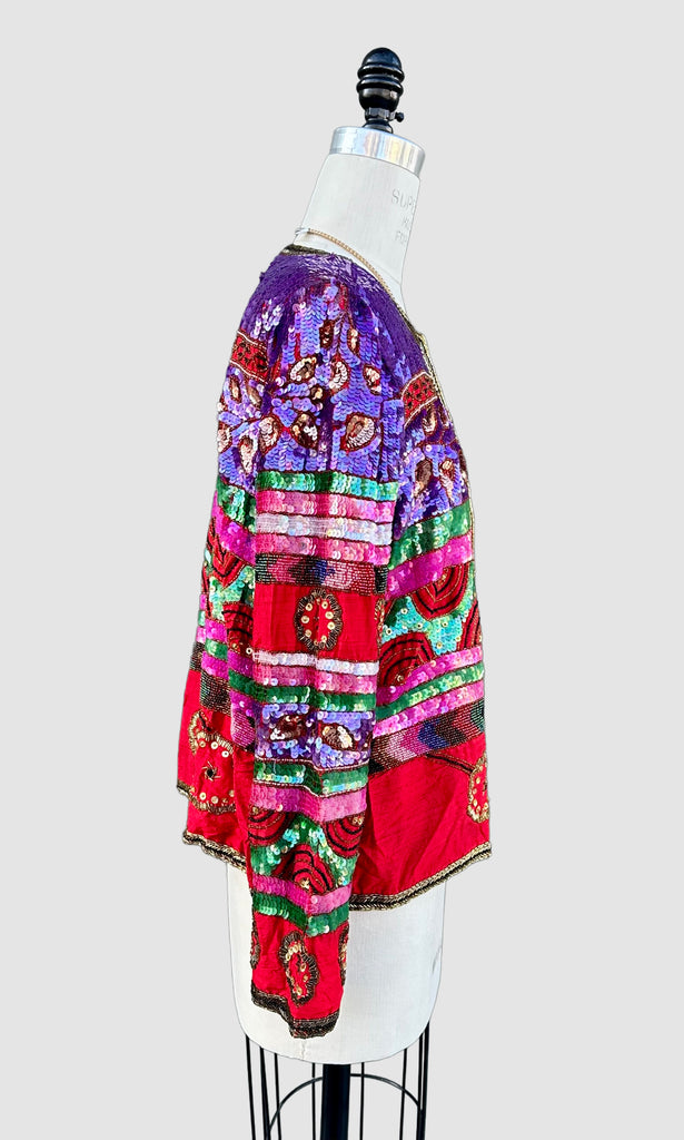 LAURENEE KAZAR Vintage Sequin Silk 90s Jacket • Large