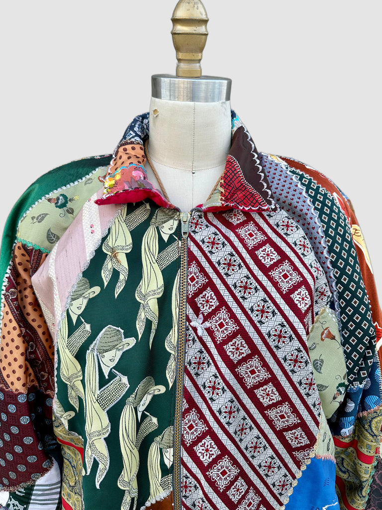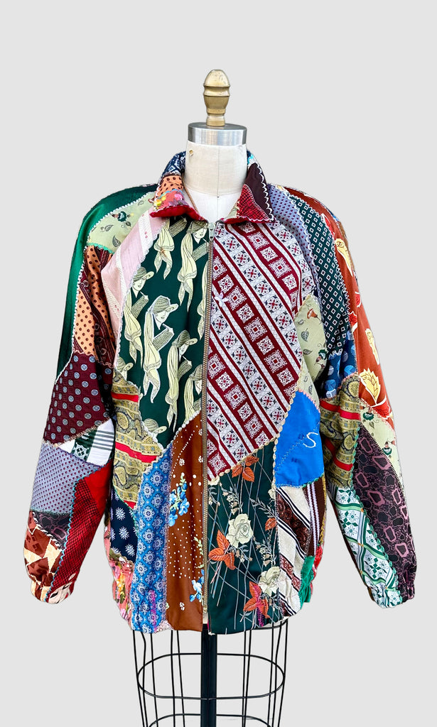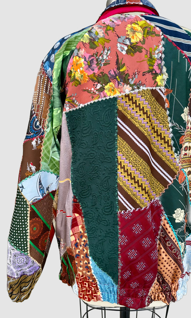 PATCHWORK UPCYCLED TIES Vintage 80s/90s Bomber Jacket • Med. to Lg.