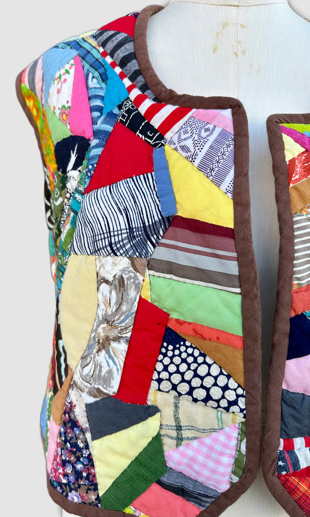 REVERSIBLE VINTAGE QUILTED Patchwork 70s Vest • Small