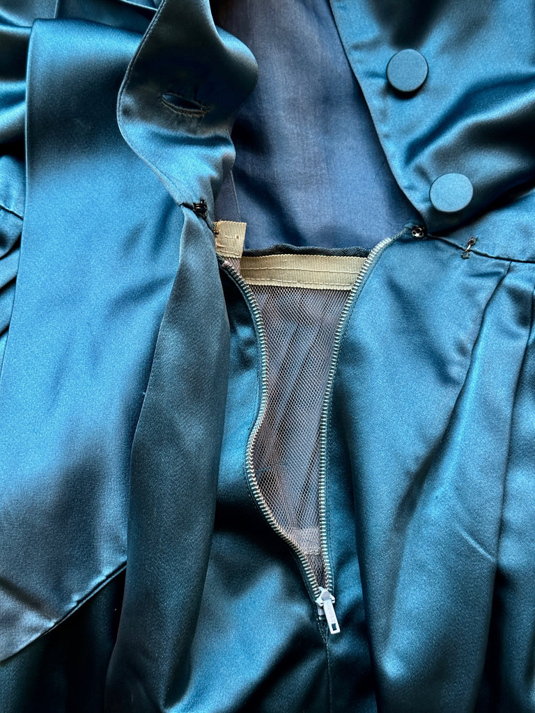 SATIN STARLETT 50s Silk Satin Dress with Kitten Bow • Small