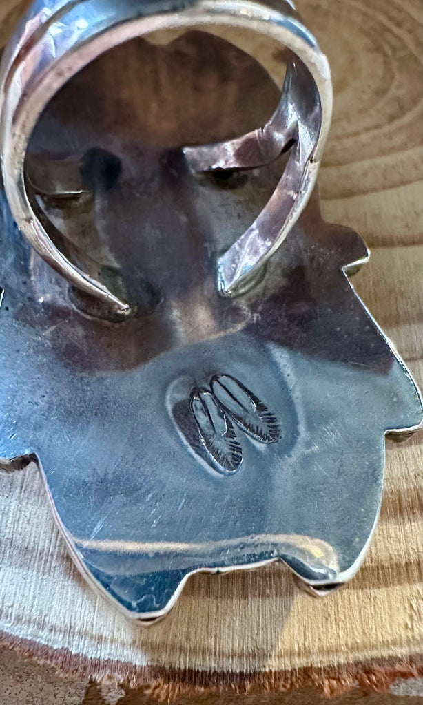 TWO FEATHERS Large Turquoise & Sterling Silver Ring • Size 11 1/4