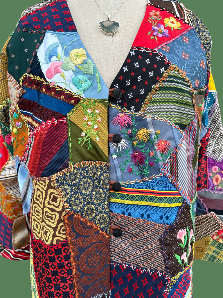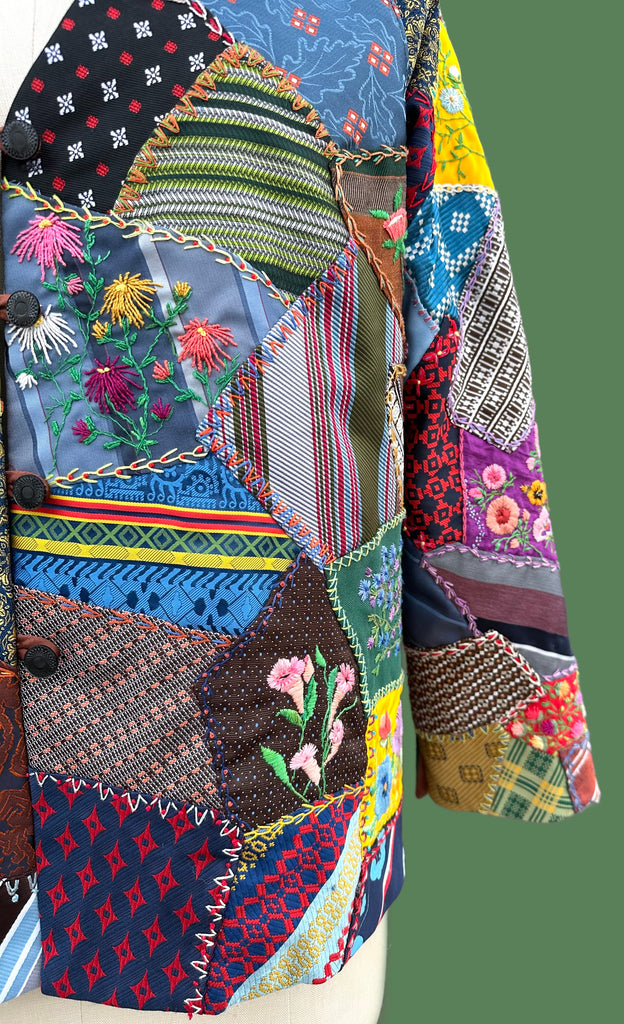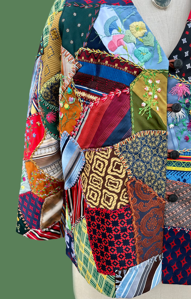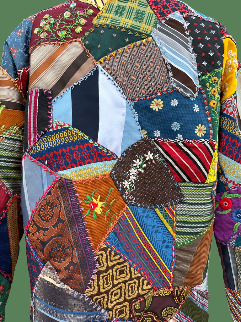 VINTAGE CRAZY QUILT 70s Patchwork Jacket • Medium