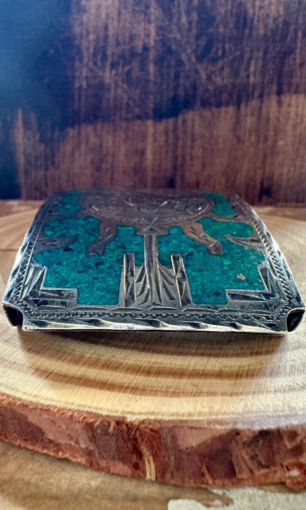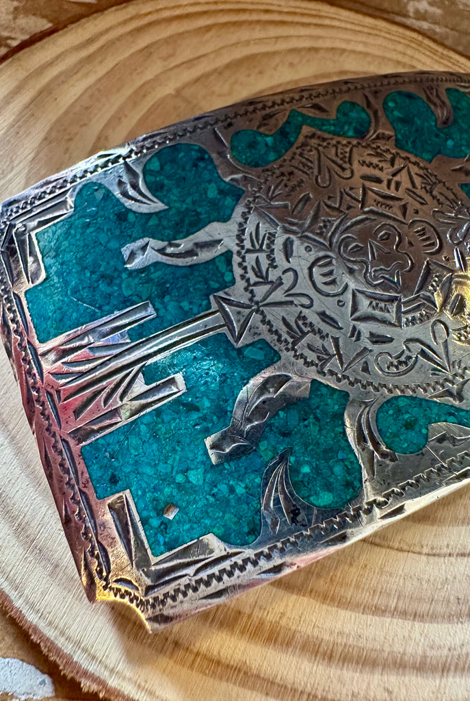 VINTAGE MEXICAN SILVER & Turquoise Inlay Belt Buckle